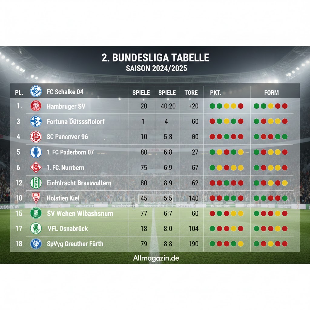 Die 2 Bundesliga Tabelle ist nicht nur ein Rankingsystem, sondern ein Spiegel der aktuellen Saisonleistung jedes Teams. Jede Mannschaft sammelt Punkte durch Siege oder Unentschieden, und diese Punkte entscheiden am Ende, wer aufsteigt, wer im Mittelfeld bleibt und wer in die 3. Liga absteigt.