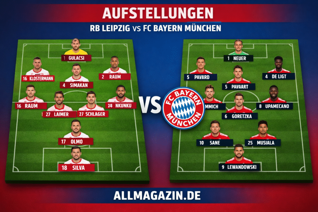 Die Aufstellungen: Teilnehmer: RB Leipzig gegen FC Bayern München heute sind mehr als nur eine Liste von Spielern. Sie geben uns Einblicke in Taktik, Spielweise und mögliche Überraschungen. Wer Fußball liebt, versteht, dass schon ein Blick auf die Aufstellung einen großen Unterschied im Verständnis des Spiels macht. Es ist wie ein kleiner Vorab-Blick auf das Drama, das auf dem Spielfeld stattfinden wird.